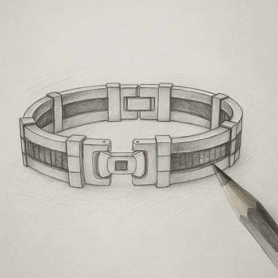 Strong, structured, yet sleek — our jewellery features bold lines and rounded forms, telling stories of determined personalities who rise to daily challenges. These are pieces made for men who lead with purpose. hotsteel Collection are not mass production. All pices start from pencil and paper.