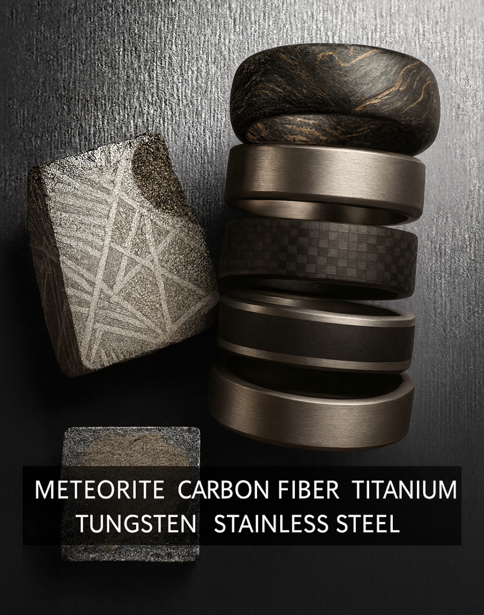 We work exclusively with 316 medical-grade Stainless Steel, carbon fiber, Tungsten, Titanium and diamonds. Each piece is crafted with high technical workmanship—designed to endure, impress, and inspire.