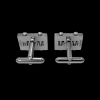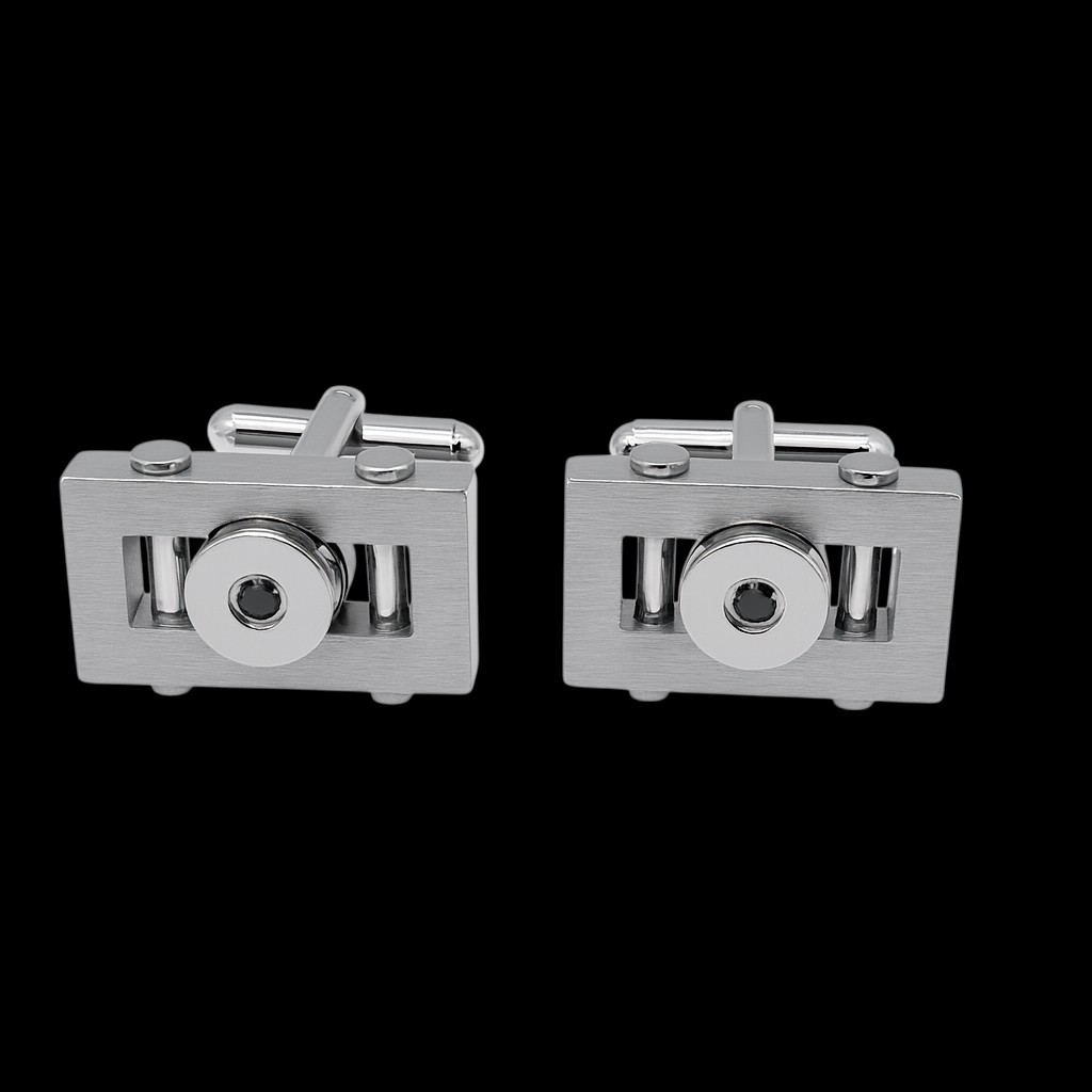 These cufflinks are engineered from 316 marine-grade stainless steel, offering exceptional strength, corrosion resistance, and a refined brushed finish. The unique rectangular frame design features a central circular accent, set with a striking black diamond that elevates the piece with bold sophistication.