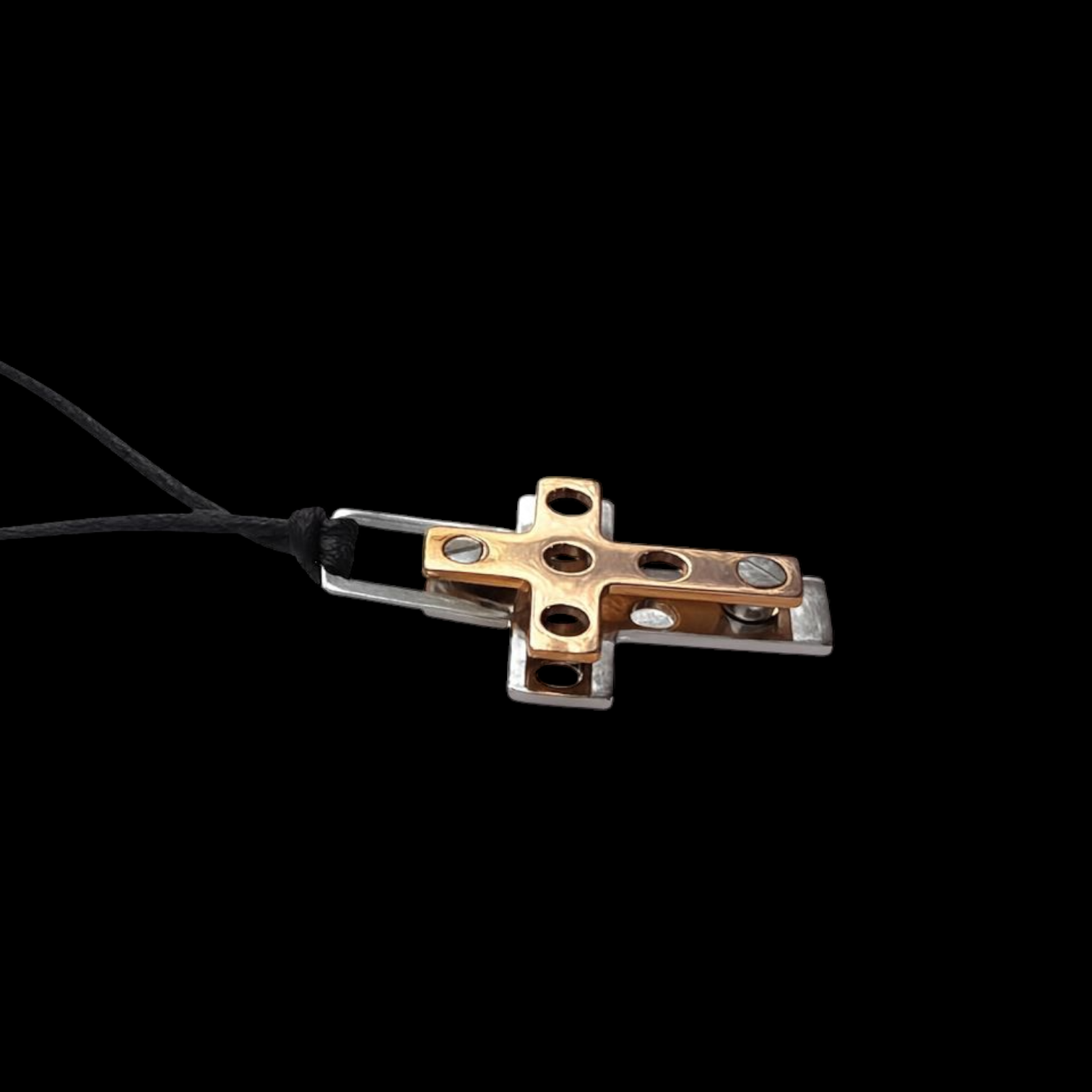 This striking cross pendant embodies strength, faith, and refined masculinity a true signature of the hotsteel Collection. Crafted from marine-grade 316 stainless steel, the pendant features a rose-gold PVD plating accented with precision-cut rivet details, creating a modern industrial aesthetic. Suspended on a durable black cord, it delivers both style and substance, perfect for everyday wear or statement layering.