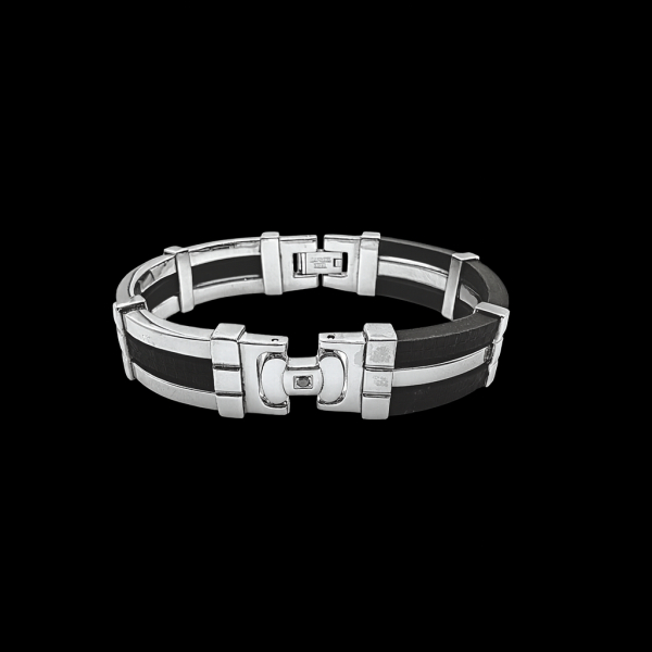 Make a bold statement with this hotsteel Collection 316L stainless steel men’s bracelet, designed for strength, precision, and refined masculinity. The bracelet features black textured rubber inlays framed by mirror polished stainless steel links, creating a perfect harmony between rugged durability and sophisticated style. Ideal for both business and casual wear, this bracelet embodies modern craftsmanship and timeless elegance  the perfect accessory for the man who values power, precision, and style.