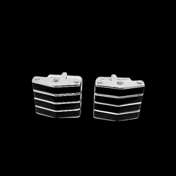 Crafted from premium 316 marine grade stainless steel, these cufflinks combine strength with refined style. The bold, layered design features rich onyx inlays, accented with rose gold detailing for a striking contrast. Each cufflink is finished with a precisely set black diamond, adding a subtle touch of luxury. With their architectural lines and flawless craftsmanship, these cufflinks are perfect for the gentleman who values sophistication, durability, and statement design.