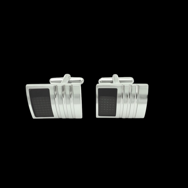 Crafted from 316 marine grade stainless steel, these cufflinks offer both durability and refined elegance. The bold rectangular design features a sleek black carbon fiber inlay, creating a modern, textured contrast against the polished steel frame.