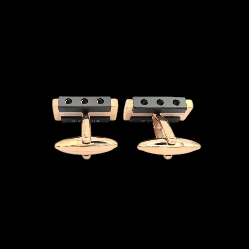 These cufflinks are crafted from premium 316 marine-grade stainless steel, plated in elegant rose gold plated for a warm, luxurious finish. The bold rectangular design is accented with sleek black inlays and finished with a carefully set black diamond, adding depth and sophistication.